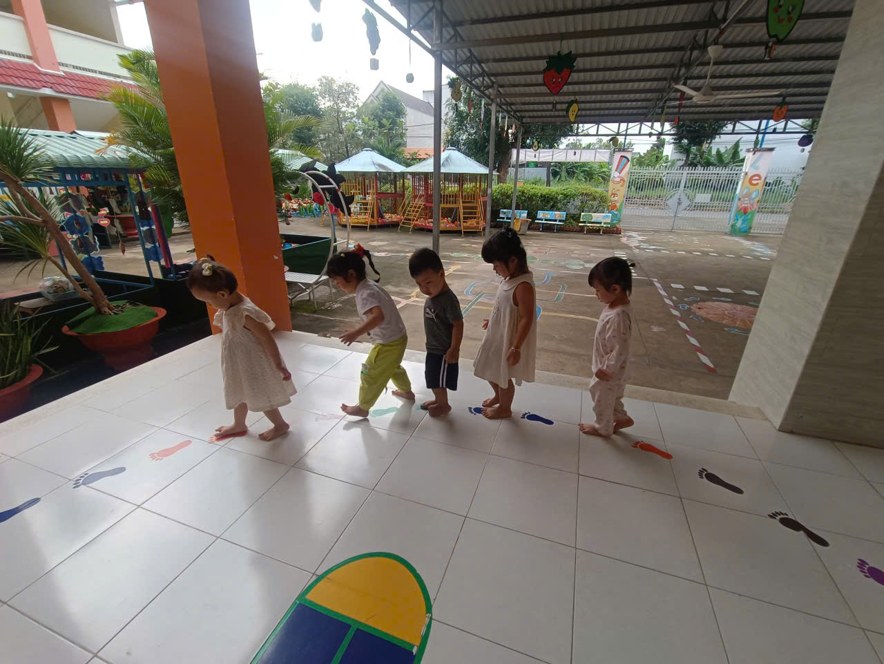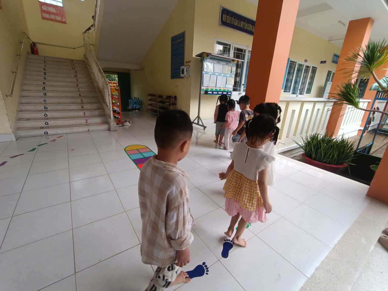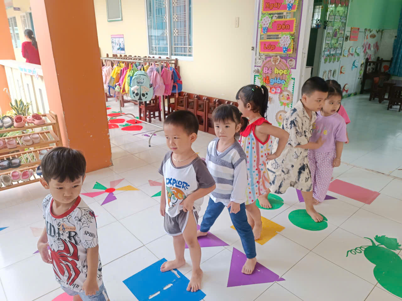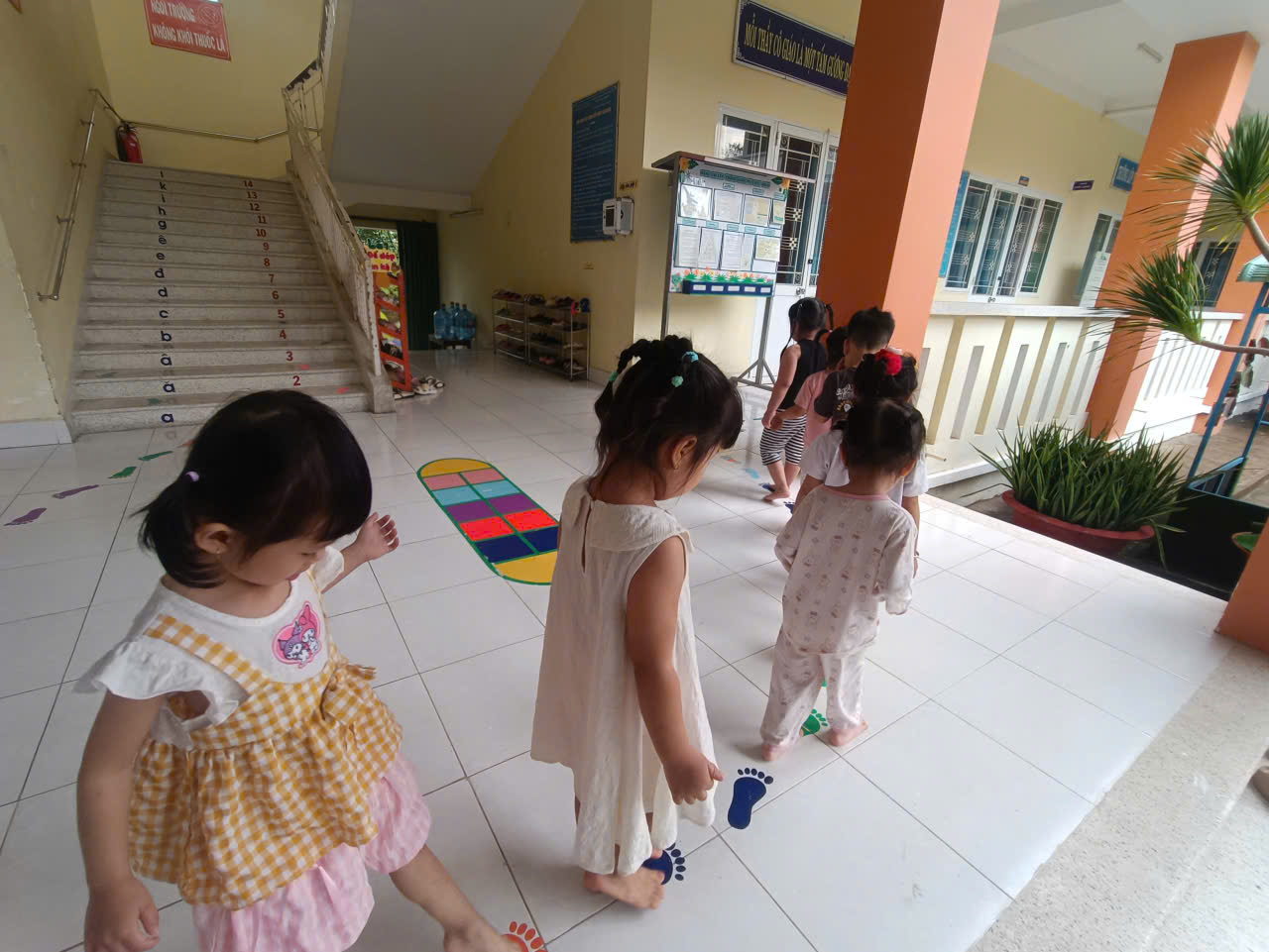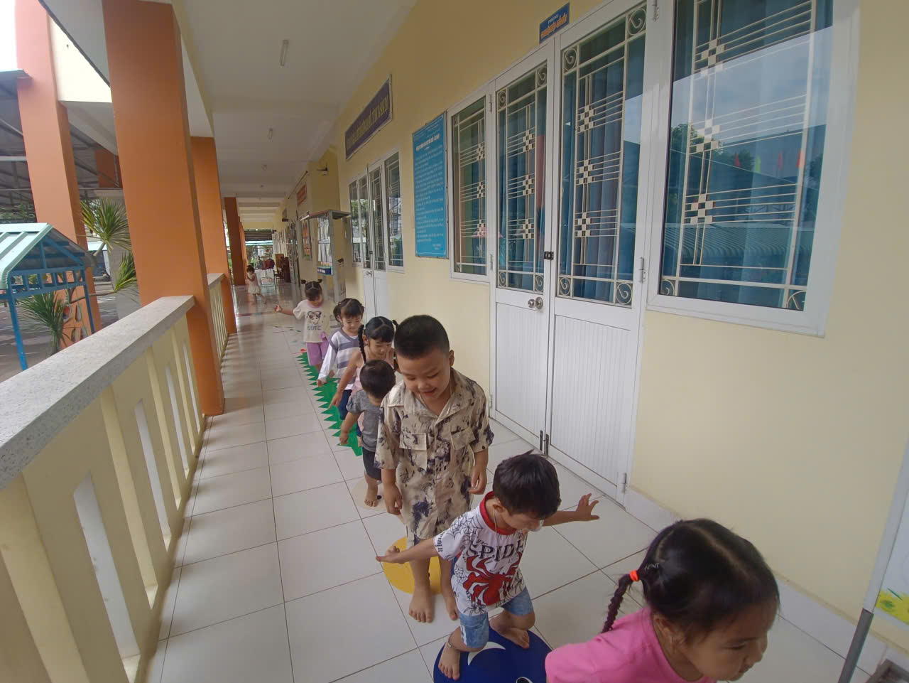 Các bé lớp Mầm chơi trò chơi trên hành lang