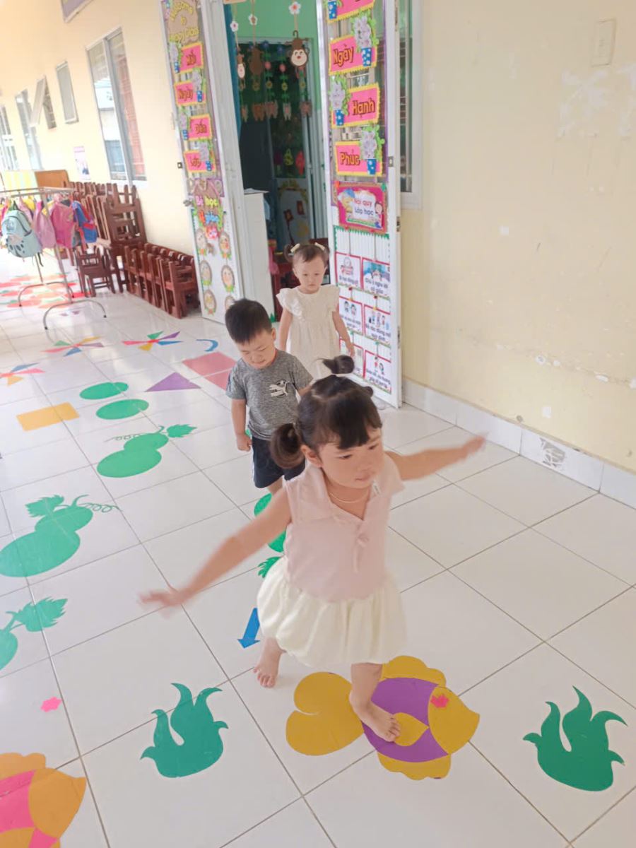 • Các bé lớp Mầm chơi trò chơi trên hành lang