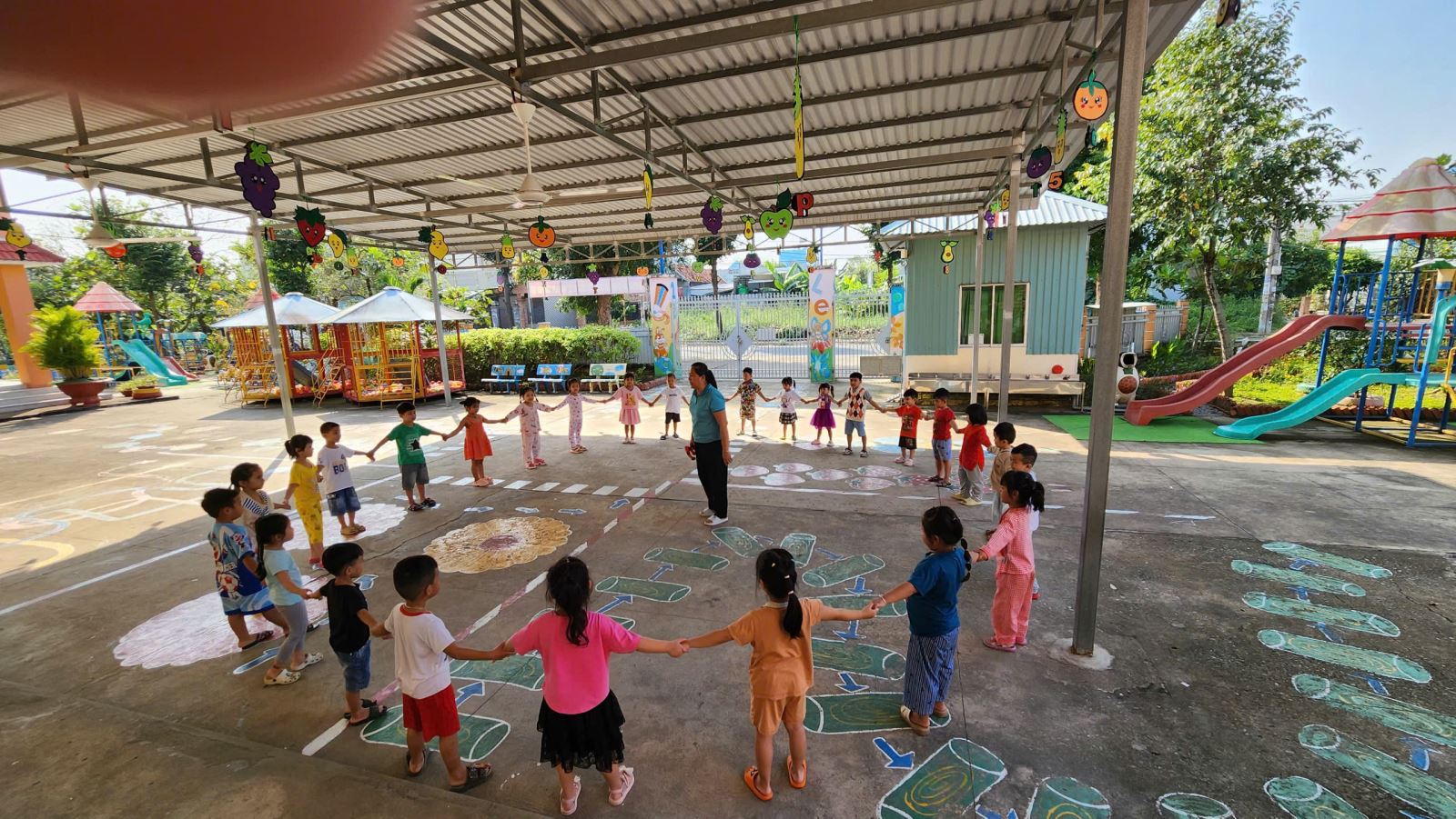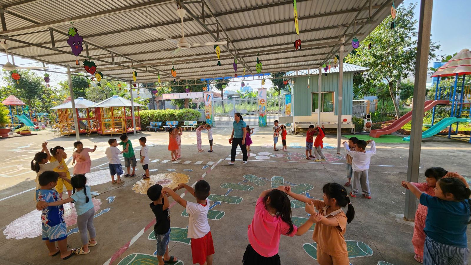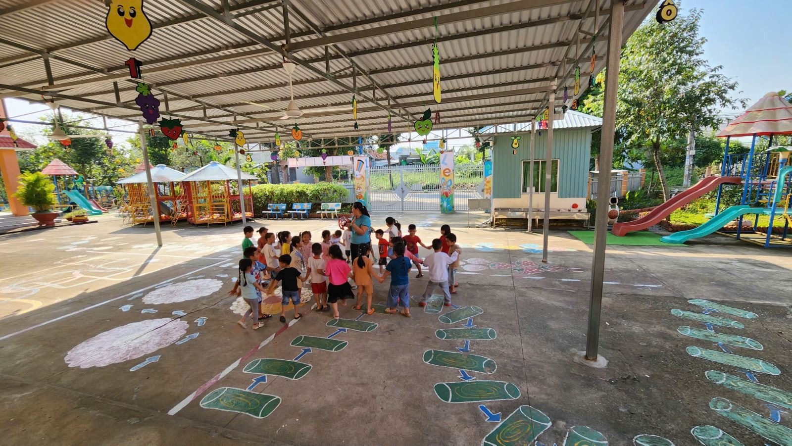 Các bé lớp Mầm chơi trò chơi trên hành lang (08/01/2026)